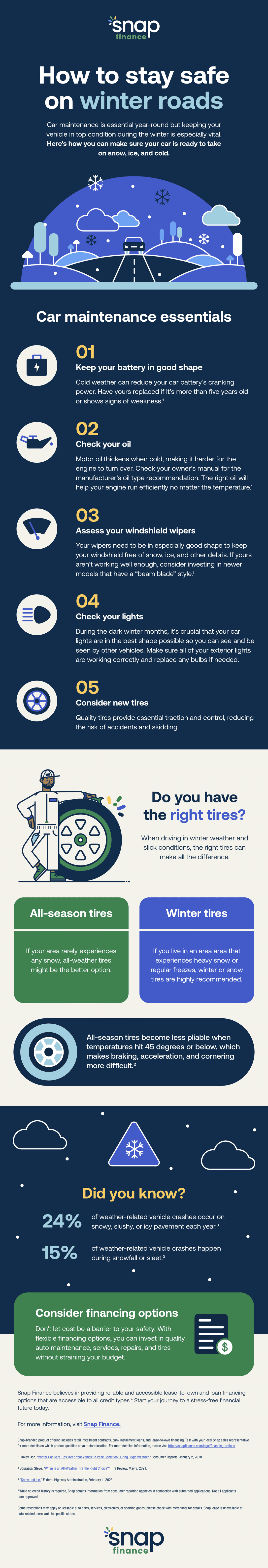 Don’t let upfront costs be a barrier to your safety. Snap Finance can help keep you on the road this winter.