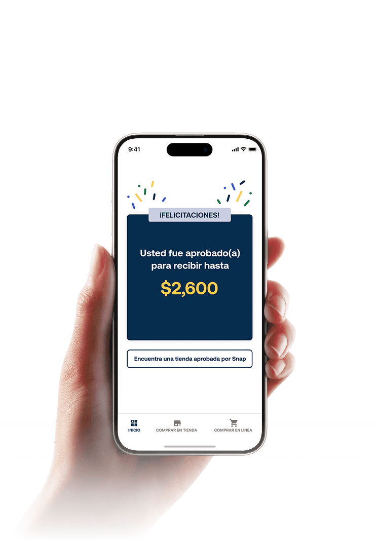 ¹No todos los aplicantes son aprobados. Aunque no se requiere historial crediticio, Snap obtiene información sobre las aplicaciones presentadas de las agencias de crédito, por lo que su puntaje con dichas agencias puede verse afectado.