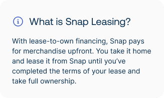 Snap and our partners look at more than traditional credit scores to determine creditworthiness. Customers who have been turned down by other providers are often approved.