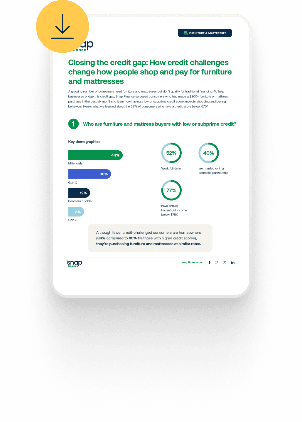 A growing number of consumers need furniture and mattresses but don’t qualify for traditional financing. New research from Snap Finance uncovers insights to help businesses better understand and serve credit-challenged furniture and mattress shoppers.